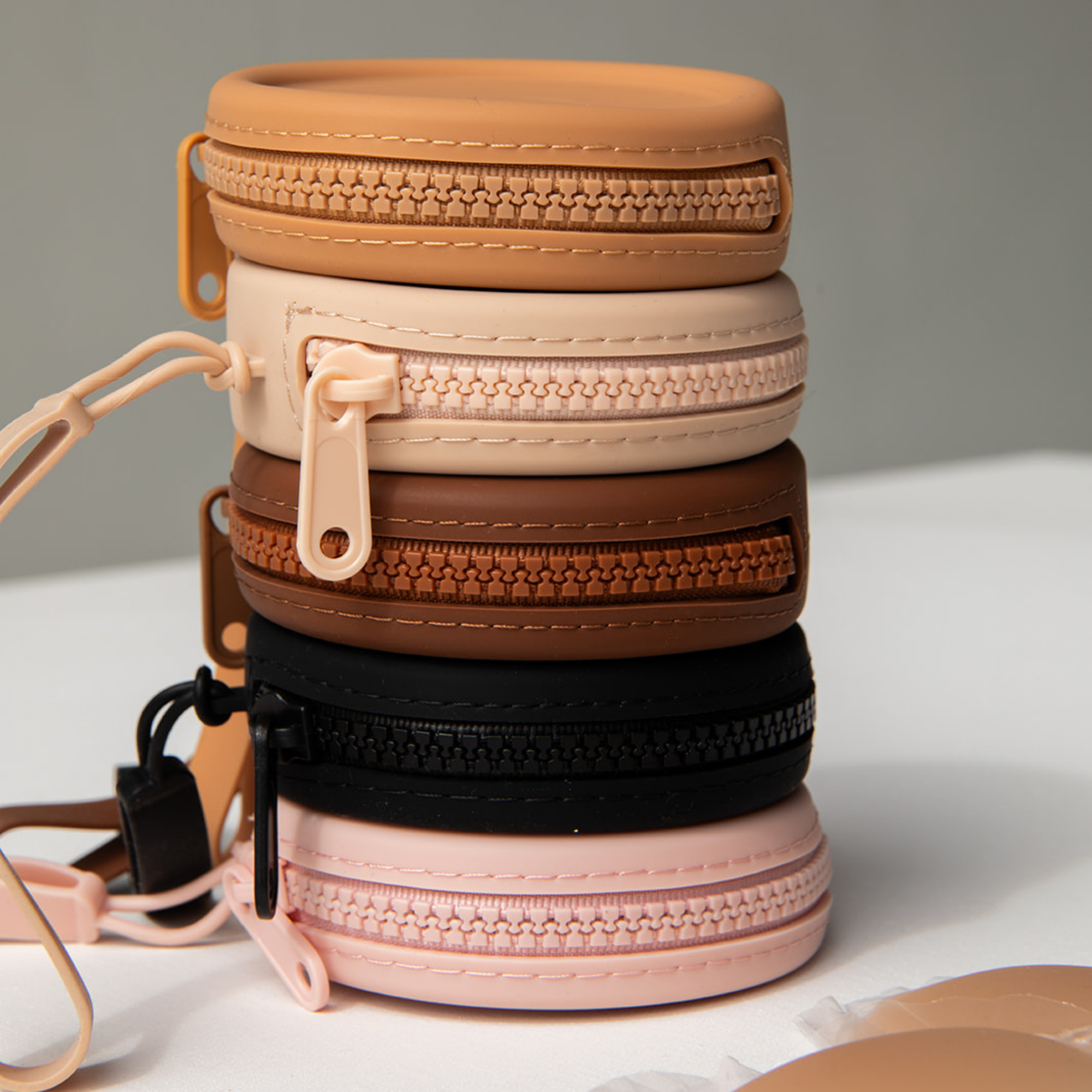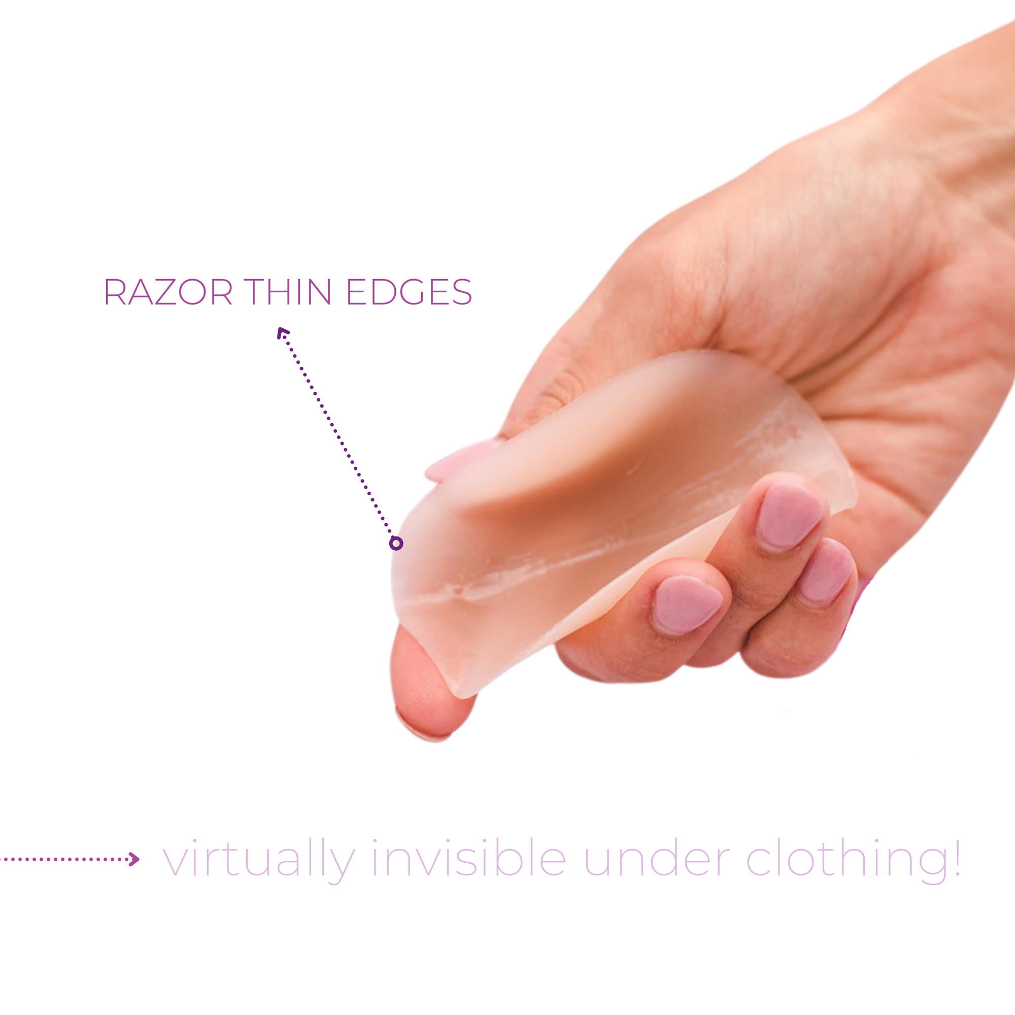 Woman wearing a patterned swimsuit standing in front of a clothing rack.