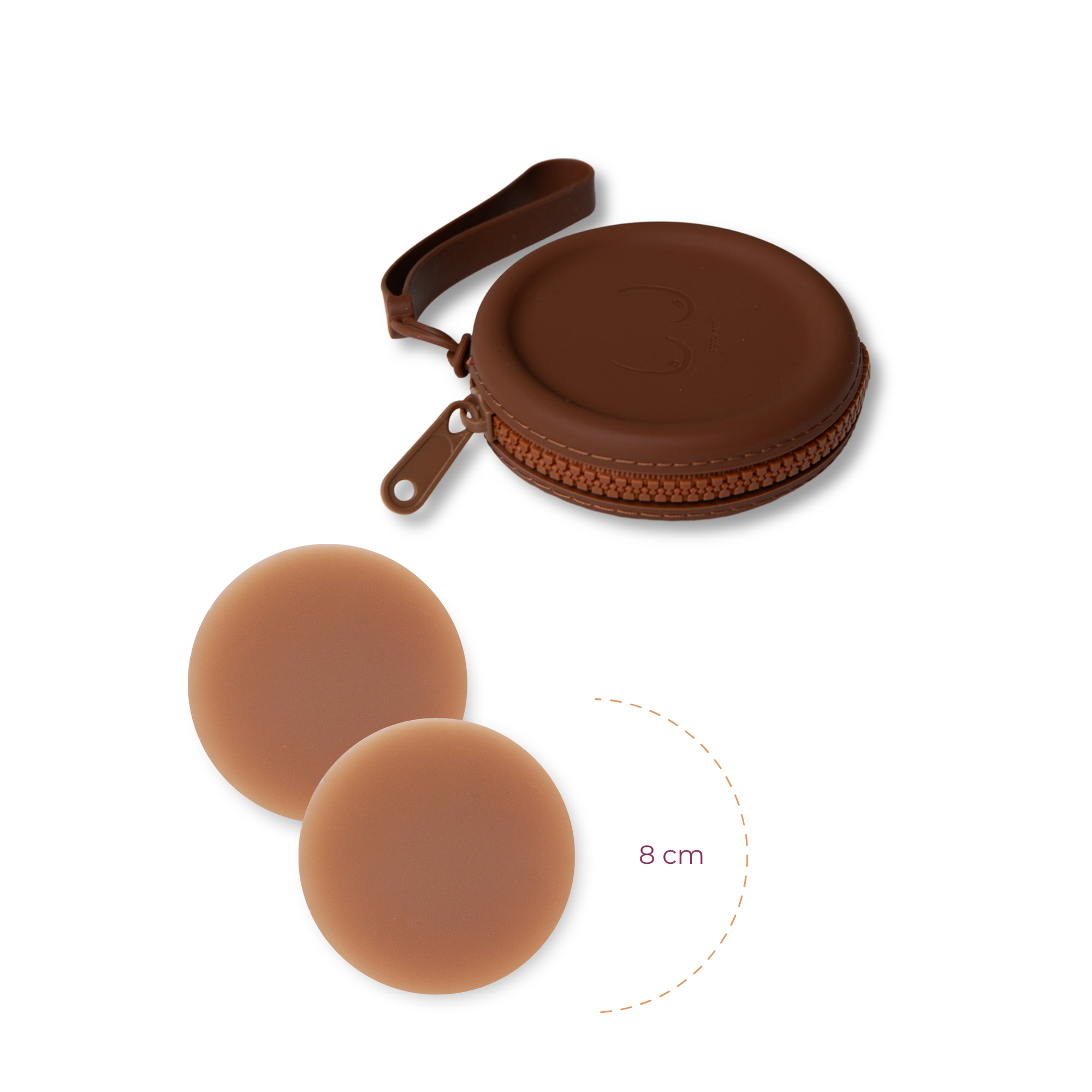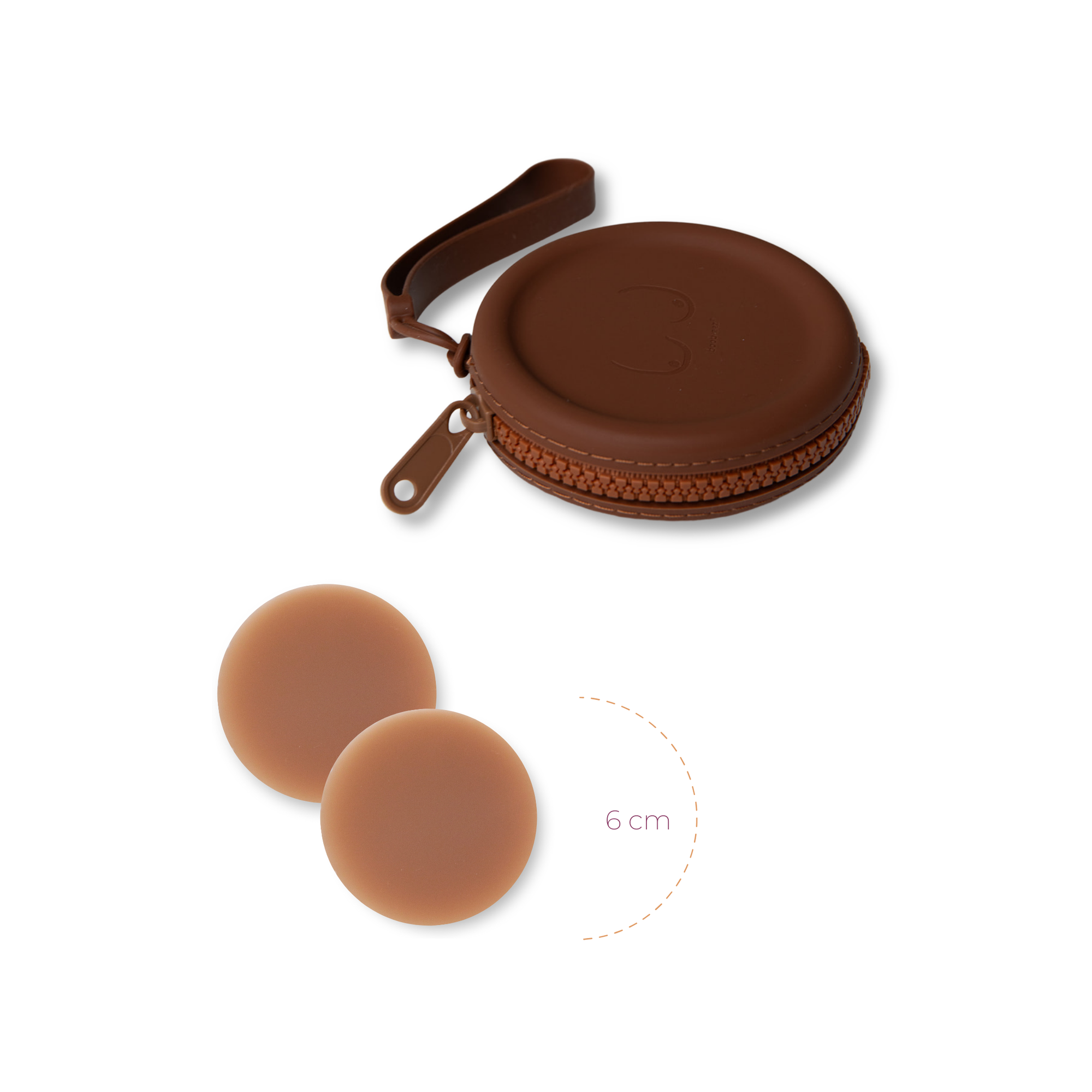 model wearing brown one piece bathing suit with brown mesh coverup pants on a white background